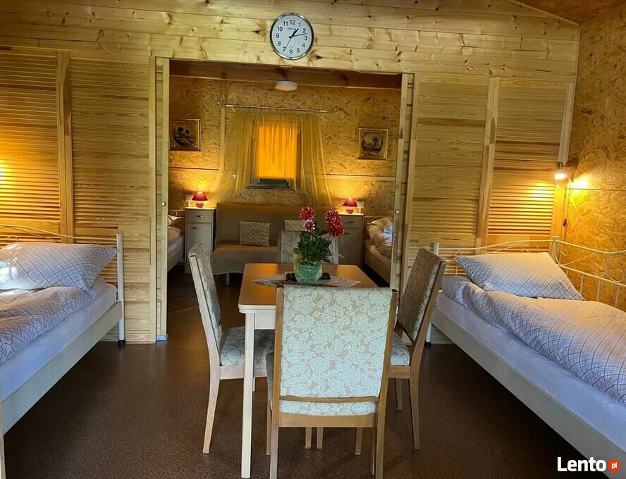 salon, kuchnia z pełnym wyposażeniem, hol oraz łazienką z natryskiem. urządzone w naturalnym stylu. Dla naszych gości przygotowałam dwa samodzielne wolnostojące murowane domki. Osobne wejście, przytulny pokój własna łazienka oraz duża kuchnia, pozwalają odpoczywać w spokoju i żyć własnym rytmem. Alternatywą wyboru może być domek drewniany. Dwie sypialnie wspólnie połączone - podzielone typu studio
