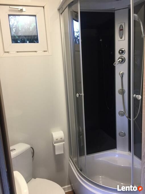 Część wypoczynkową można przekształcić w podwójne łóżko. Łazienka toaleta, kabina prysznicowa, umywalka. Anex kuchenny zlew, lodówka, mikrofala, szafki z wyposażeniem