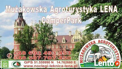 Pole namiotowe – Agroturystyka Mużakowska CamperPark LENA BronowiceNajbliżej położona przy biegnącej ścieżce rowerowej Oder – neisse Redweg